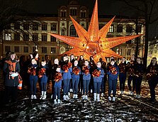 Dank der großzügigen Unterstützung der Firma Masson aus Stralsund, die dem Rostocker SI-Club im Jahr 2023 den Stern sponsorte, der unkomplizierten Genehmigung durch die Hansestadt Rostock und der Stromversorgung durch die EAS ist es dem Rostocker SI-Club 2024 zum zweiten Mal möglich, den orangen Leuchtstern auf dem Universitätsplatz erstrahlen zu lassen und ein weithin sichtbares Zeichen gegen Gewalt an Frauen zu setzen.