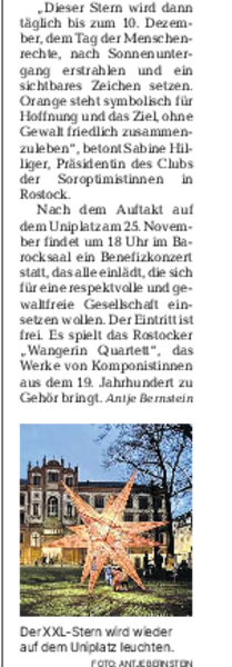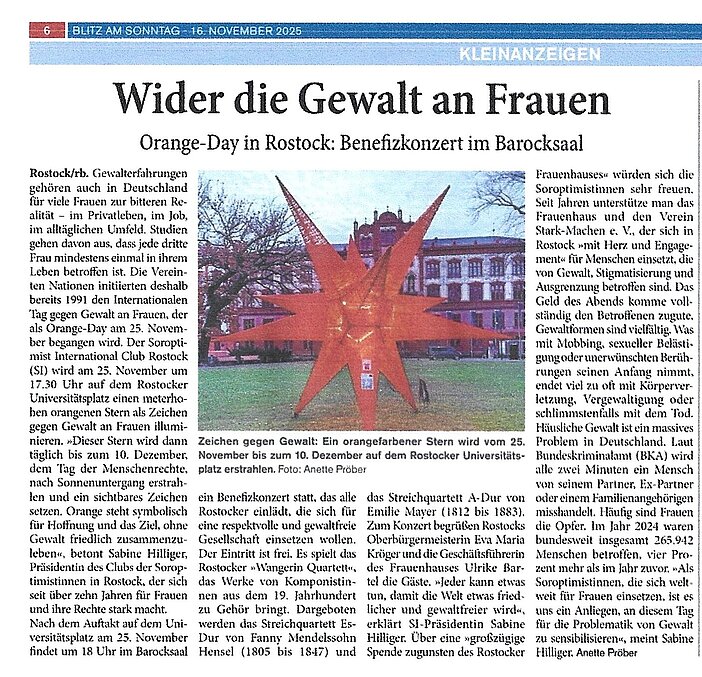 Bericht in der Ostseezeitung (04.11.2025, Seite 12) anlässlich der bevorstehenden Orange Days
